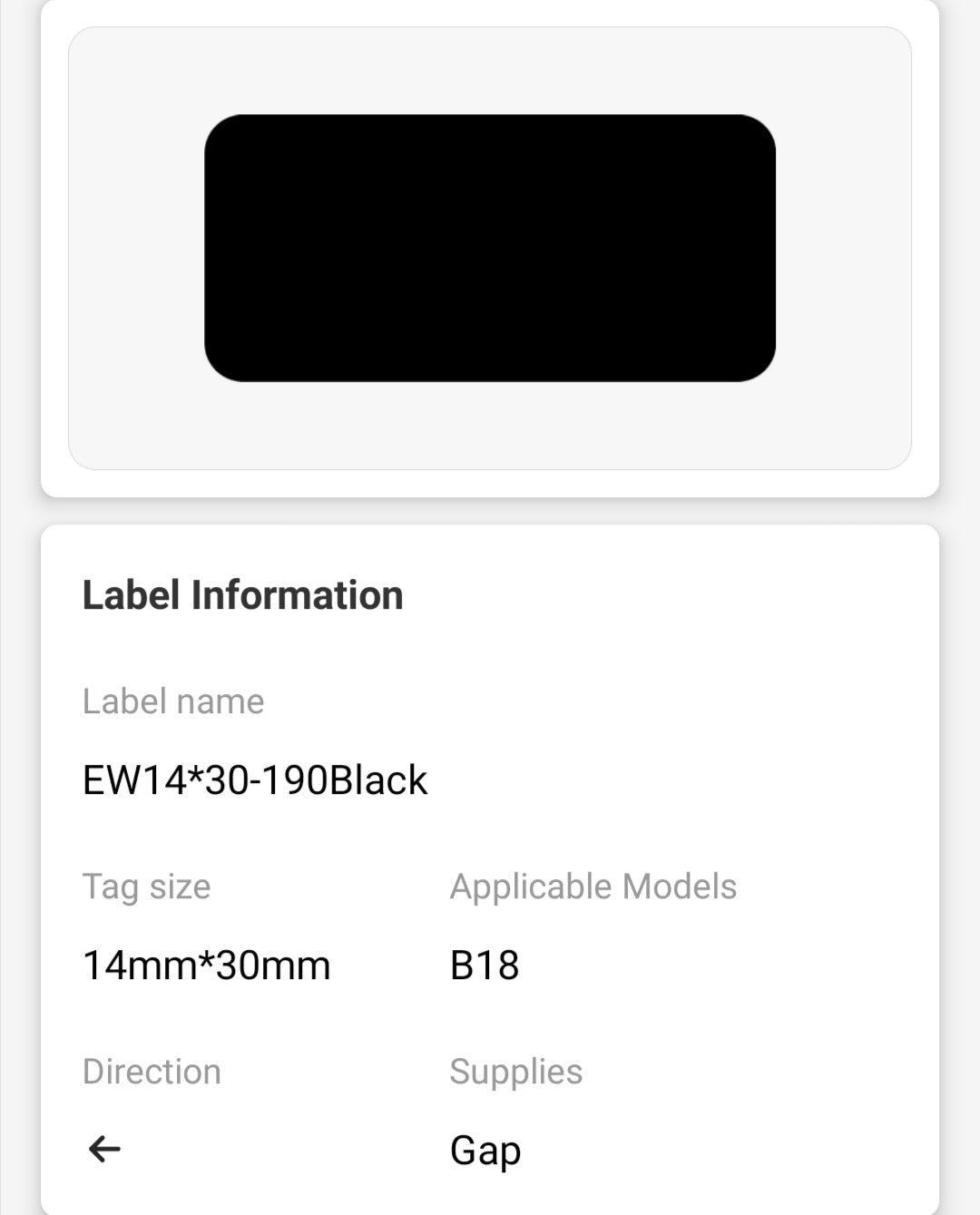 NB390 - NIIMBOT - B18 / N1 - EW14X30mm -190 LABELS PER ROLL - BLACK