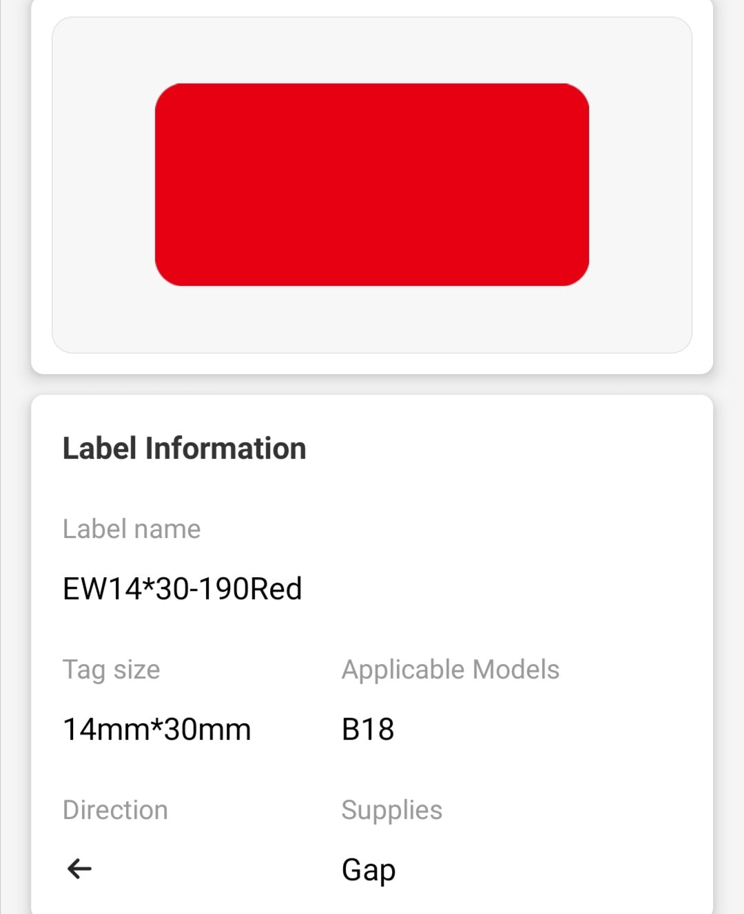 NB389 - NIIMBOT - B18 / N1 - EW14X30mm - 190 LABELS PER ROLL - RED