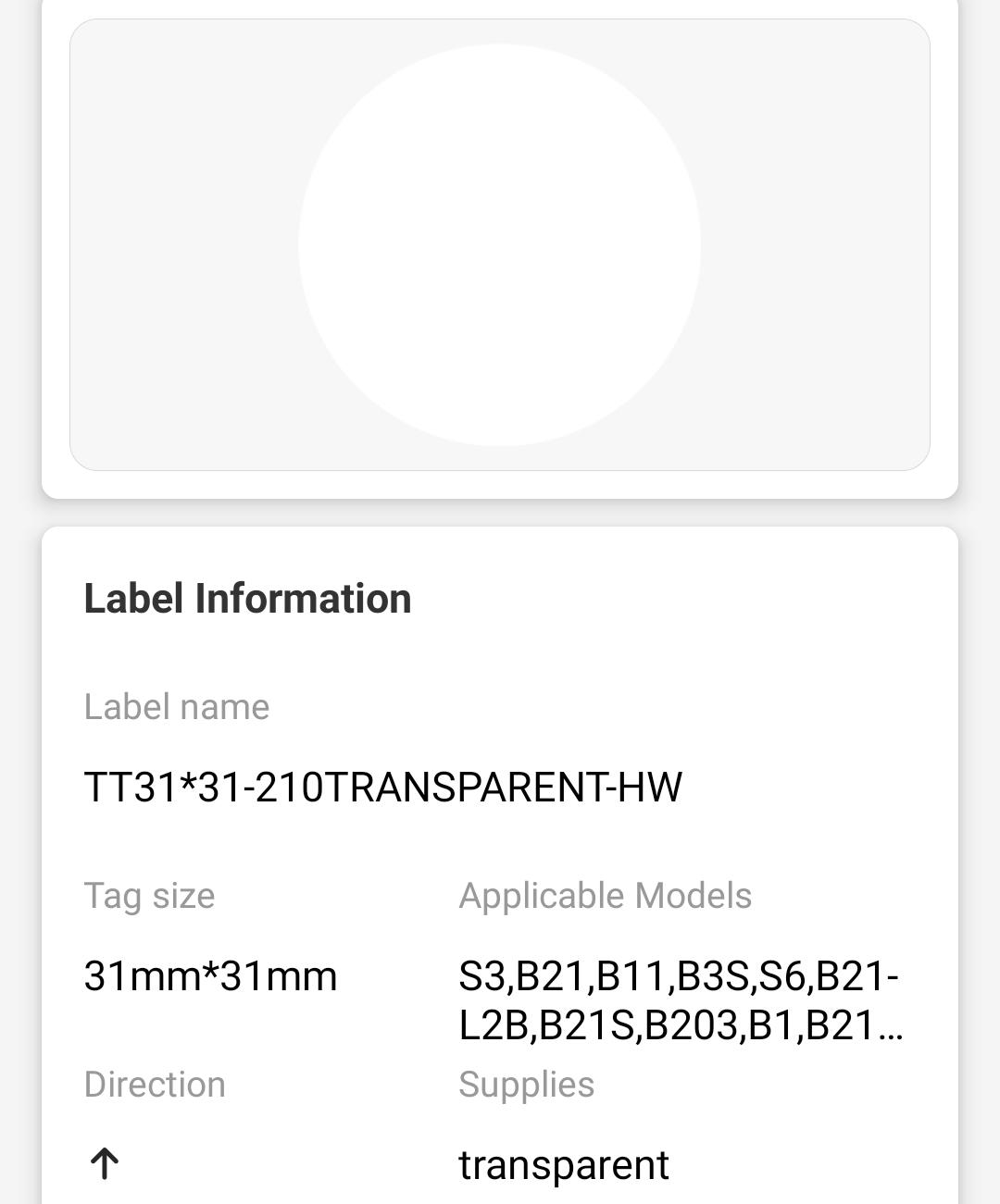 NB224 - NIIMBOT - B1 / B21 / B3S - TT31X31MM - 210 LABELS PER ROLL - ROUND - TRANSPARENT