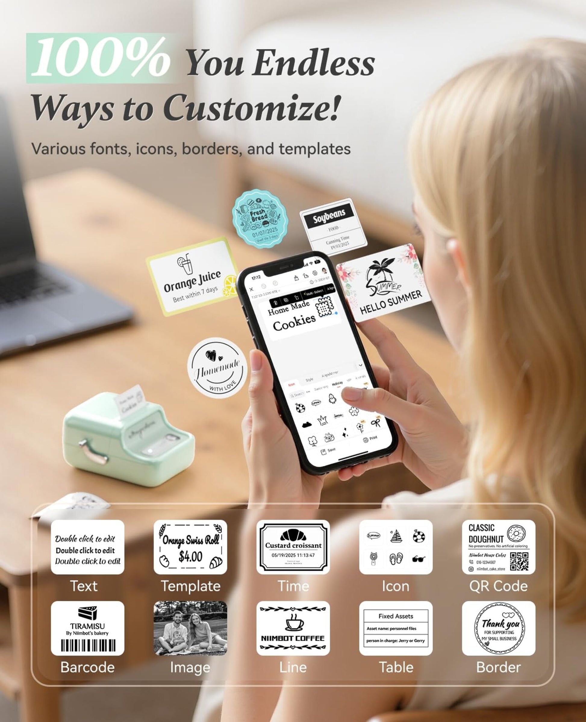 NB109 - NIIMBOT - B21 - PORTABLE THERMAL LABEL BLUETOOTH PRINTER INCLUDING FREE LABEL (50*30MM - WHITE)