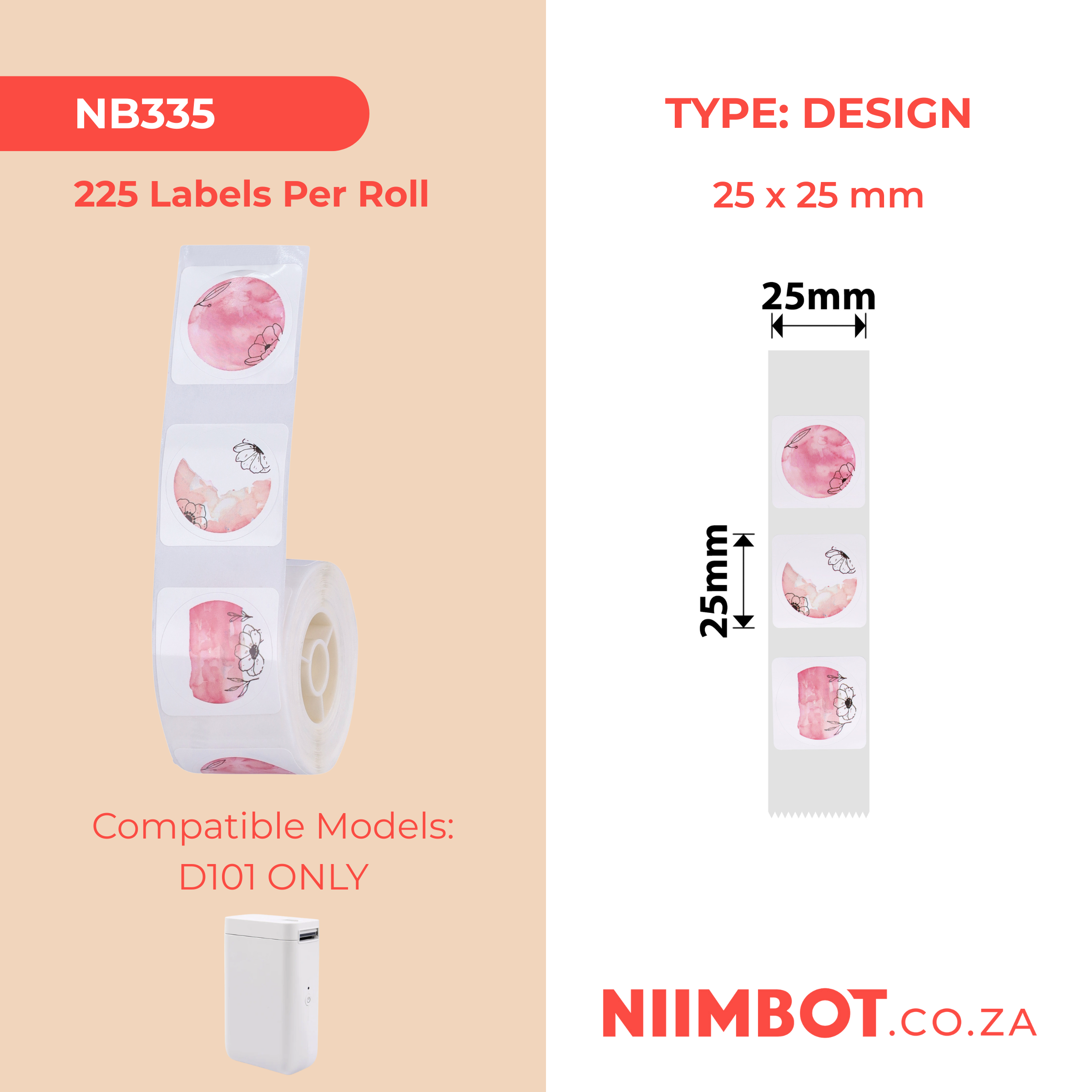 NB335 - NIIMBOT - D101 ONLY - R25X25MM - 225 LABELS PER ROLL - ROUND - PINK