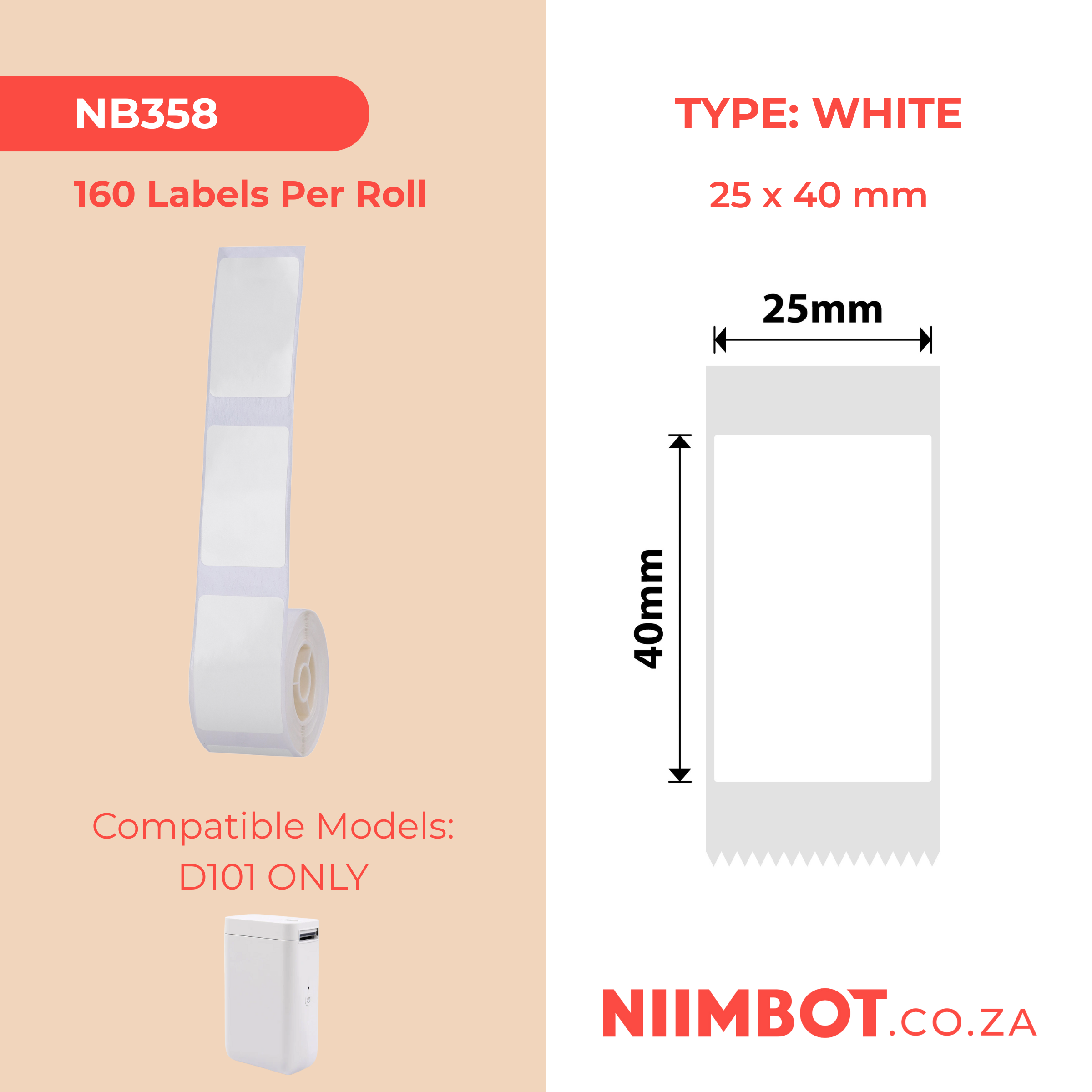 NB358 - NIIMBOT - D101 ONLY - R25X40MM - 160 LABELS PER ROLL - WHITE