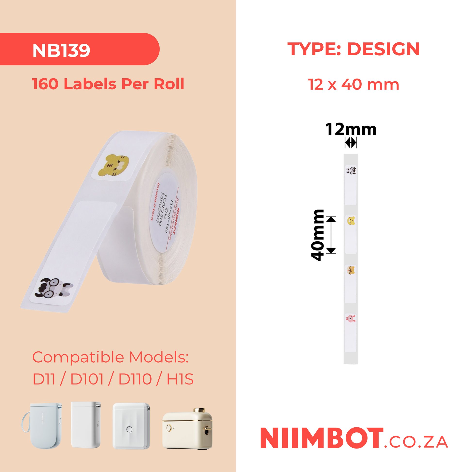 NB139 - NIIMBOT - D11 / D101 / D110 / H1S - RP12X40MM - 160 LABELS PER ROLL - ZOO DESIGN
