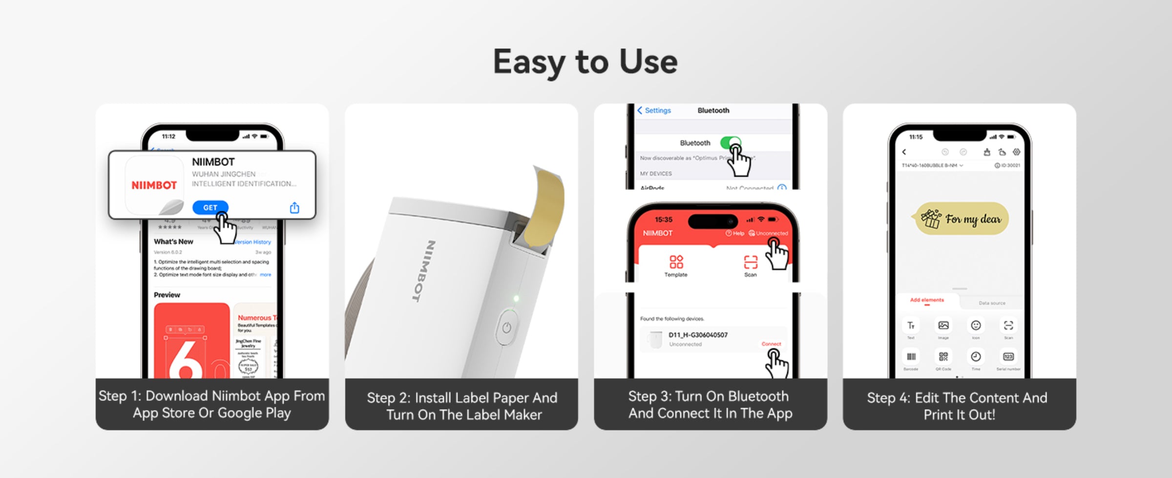 ✅ Compatible with Niimbot App (iOS & Android) – 100+ fonts, 3000+ icons, multiple languages